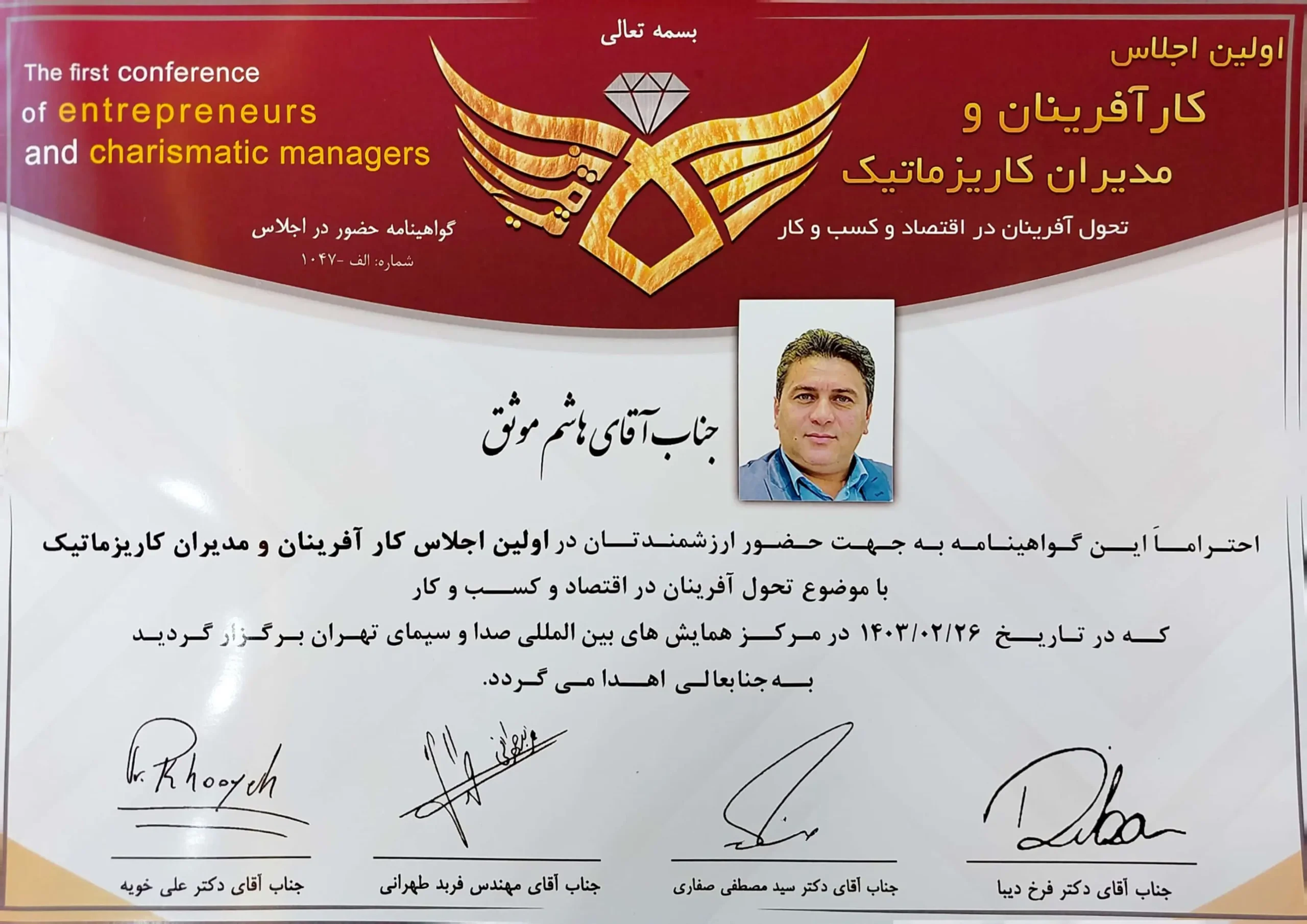 افتخار کسب تندیس بهترین مدیر تحول آفرین در عرصه اقتصاد